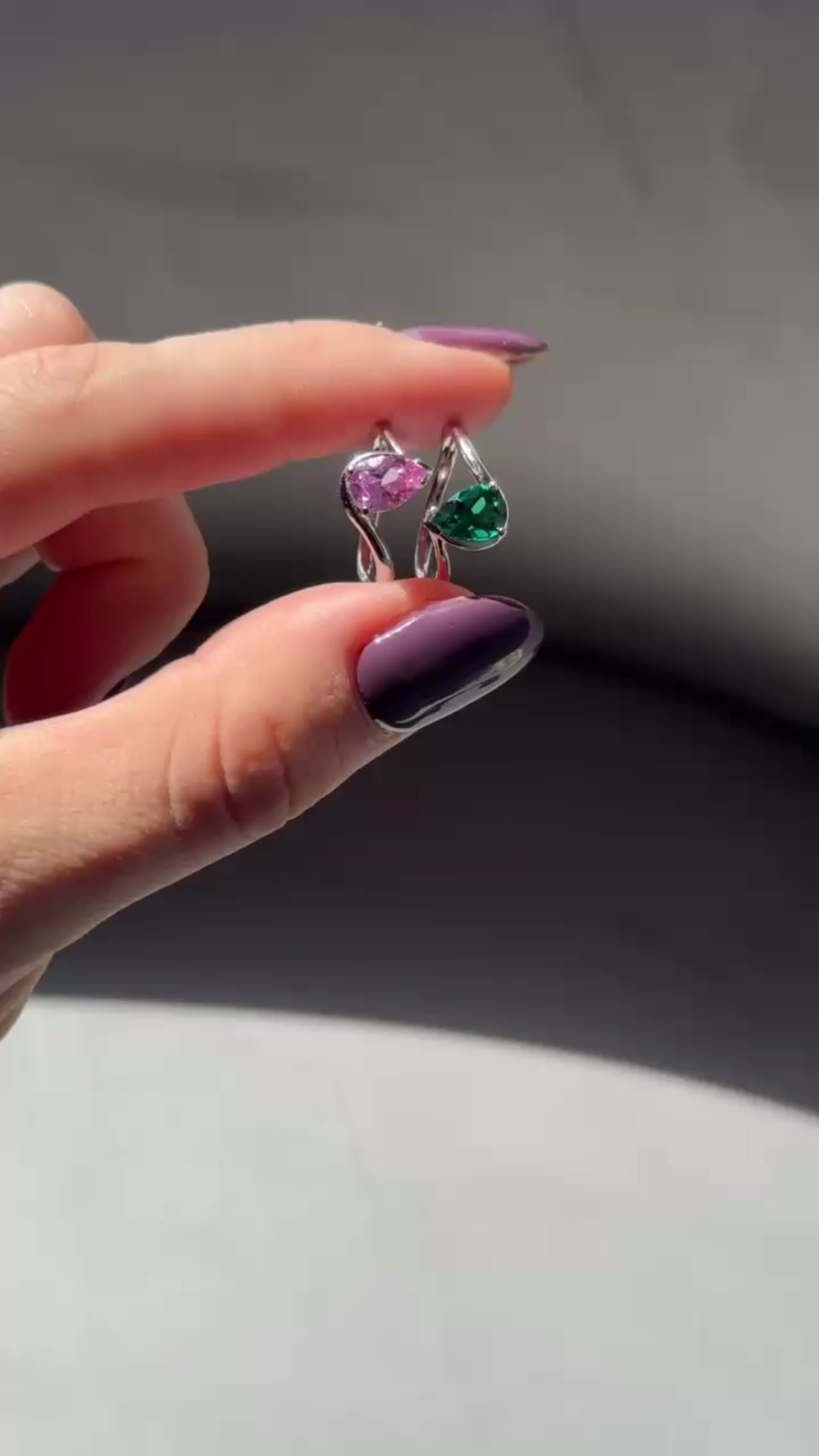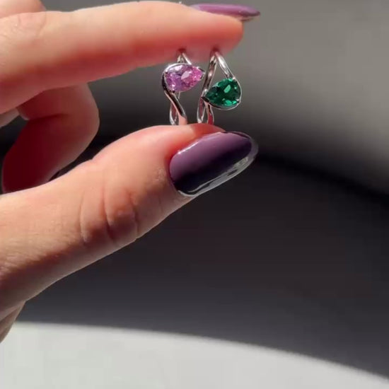 Disponible en esmeralda o zafiro rosa de 7x5 mm cultivados en laboratorio.
